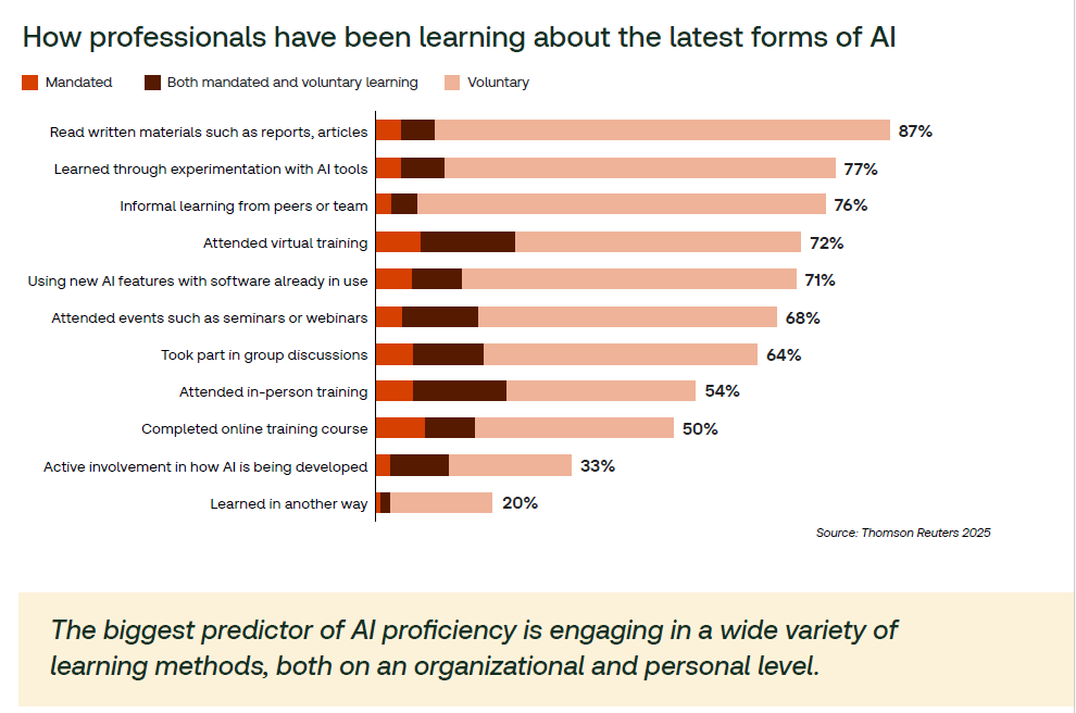 The 2025 Thomson Reuters report offers a sharp lens on how AI is redrawing the lines of professional success, especially in law, tax, compliance, and risk. AI is no longer a theoretical disruptor. It is a present-tense differentiator. The data shows measurable ROI and dramatic time savings, but only for those who approach it with intention.